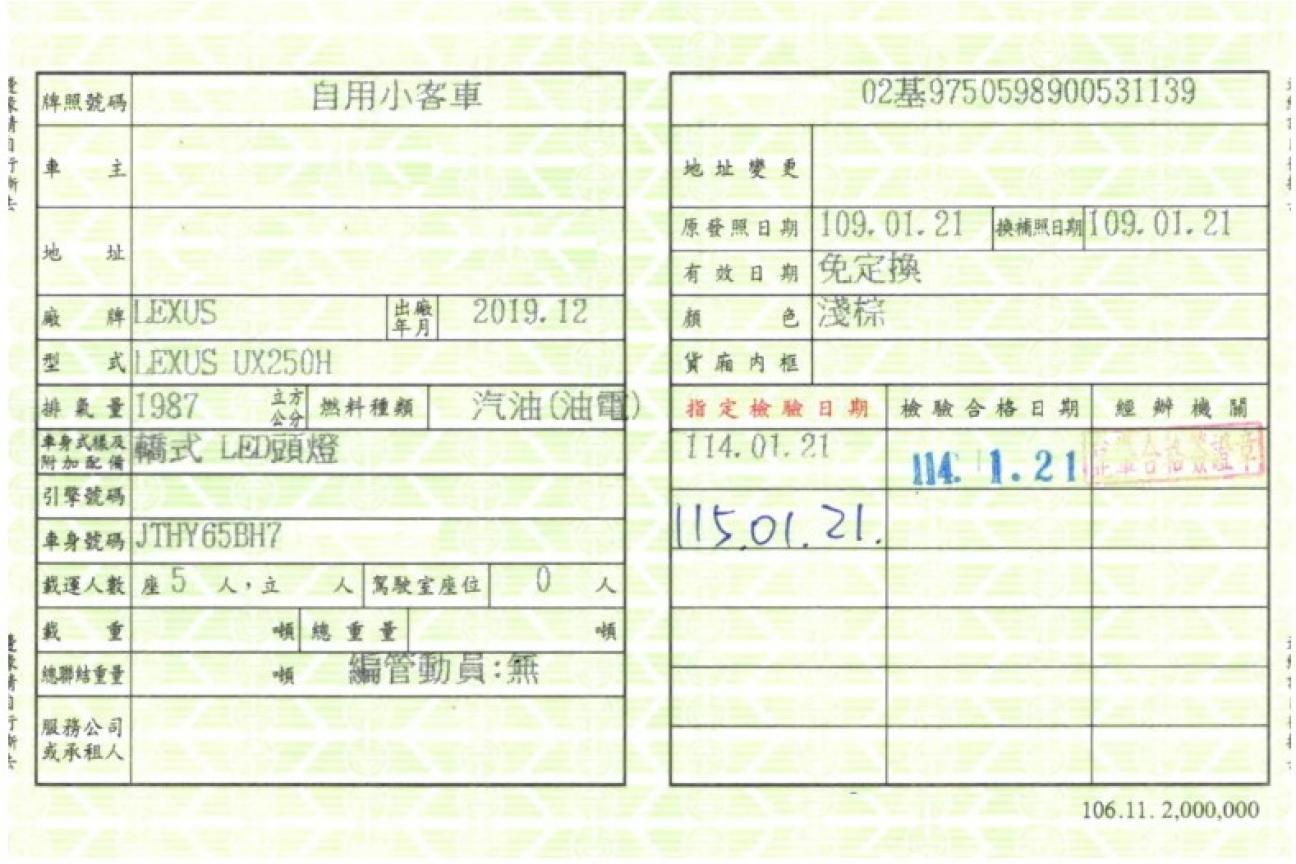 - 領牌年月2020.01